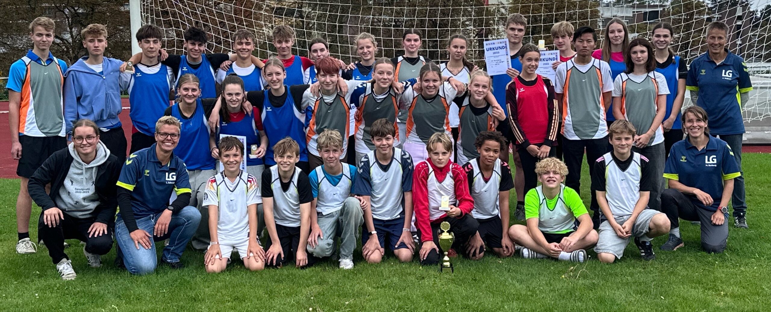 Knapp war es diesmal schon, denn das Gymnasium Schwarzenbek als zweitplatziertes Team pirscht sich mit guten Leichtathleten langsam an die LG-Sportler heran. Aber in der Breite waren die hiesigen Schülerinnen und Schüler dann doch besser aufgestellt: Mit deutlich mehr Podestplätzen im Dreikampf und Hochsprung sowie über die 800-Meter-Strecke verteidigte unsere Schule den Wanderpokal für den besten Leichtathletik-Nachwuchs im Kreis. Trotz der nassen Laufbahn purzelten einige persönliche Bestleistungen und in den Staffelrennen über 4×100 Meter hatten sowohl die Jungen als auch die Mädchen unter jeweils neun Konkurrenten der weiterführenden Schulen die Nase vorne. Ein Sieg, der für großen Teamgeist und eine breit aufgestellte Gemeinschaft spricht!