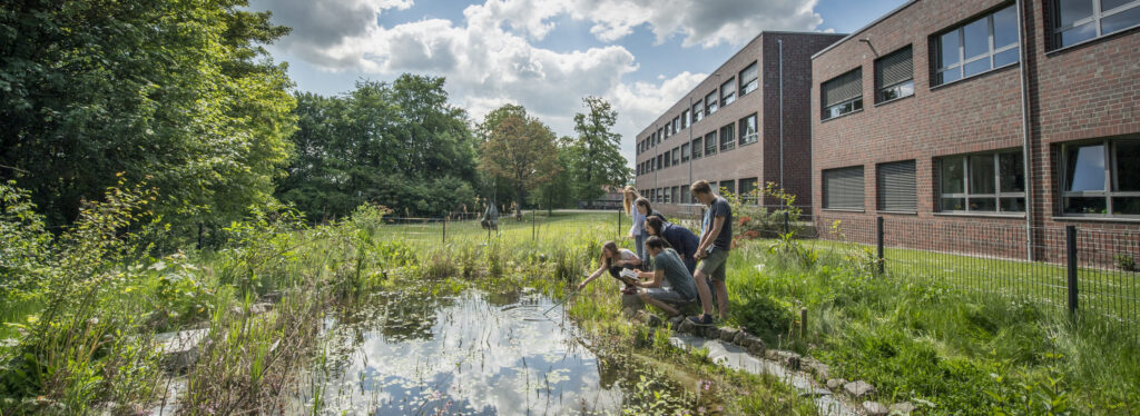 Die LG ist eine Schule im Grünen – denn der Fuchswald, Naturwiesen und der Ratzeburger See liegen direkt vor der Schultür. Und das ist eine echte Bereicherung für den Biologieunterricht! So ist es im Unterricht in Doppelstunden leicht möglich, kurzfristig rauszugehen und sich biologische Phänomene direkt vor Ort zu erschließen. In den letzten Jahren haben viele Außenprojekte im Bereich der Schule den Unterricht noch abwechslungsreicher werden lassen. Unser Schulteich veranschaulicht den Biologie- und AnNa-Unterricht enorm. Ein Schulgarten ebenso wie eine Insektenburg (in Kooperation mit dem BUND) sind dabei entstanden.
