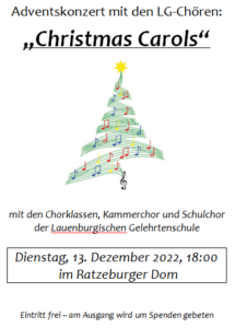Am Dienstag, 13.12., 18:00, laden die Chorklassen sowie Schul- und Kammerchor der Lauenburgischen Gelehrtenschule zu einem Adventskonzert in den Ratzeburger Dom. Die Chöre präsentieren ein…