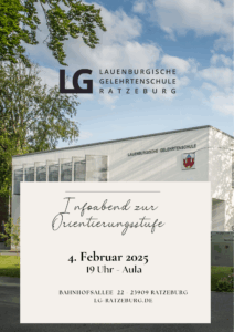 Am 4. Februar 2025 findet um 19 Uhr in der Aula der Lauenburgischen Gelehrtenschule ein Infoabend zur Orientierungsstufe für angehenden 5. Klassen statt. Flyer Infoabend…