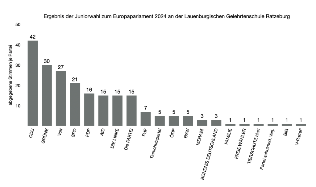 9. Juni 2024 – Alle Bürger der Europäischen Union sind dazu aufgerufen, das Europäische Parlament zu wählen und zum allerersten Mal in der gesamten Geschichte der EU sind auch Jugendliche ab 16 Jahren dazu berechtigt, an diesen teilzunehmen. Passend dazu fand in der Woche zuvor auch die Juniorwahl, organisiert von dem WiPo-Profil der Q1, in unserer Schule statt. Dabei hatten die Klassenstufen 9 bis 11 die Chance, eine Art Simulation der EU-Wahl durchzuführen. Gerade für diejenigen Schülerinnen und Schüler, die noch nicht wahlberechtigt sind, stellt dies eine gute Möglichkeit dar, um zu erfahren, wie eine Wahl aussieht und abläuft.