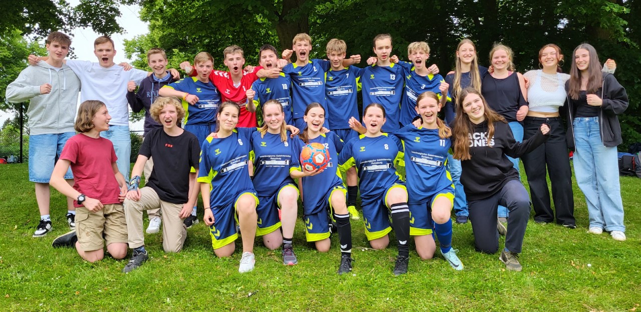 Als dann das große Fußballturnier auf dem Programm stand, startete die LG mit drei sensationellen Siegen und wurde trotz der dann folgenden Niederlage und einem Unentschieden Gruppenerster – dank des Theoriebeitrags. Im Viertelfinale und im Halbfinale wuchs das Mixed-Team (immer drei Mädchen auf dem Feld waren Pflicht) über sich hinaus und gewann durch schnelle Tore und dann folgende Abwehrschlachten beide KO-Spiele. Dass im Finale die älteren Neuntklässler der Elsa-Brädström-Schule aus Elmshorn mit 2:0 die Oberhand behielten, tat der Freude keinen Abbruch – die Silbermedaillen und die Prämie versüßten den spaßigen Ausflug an die Förde zusätzlich.
