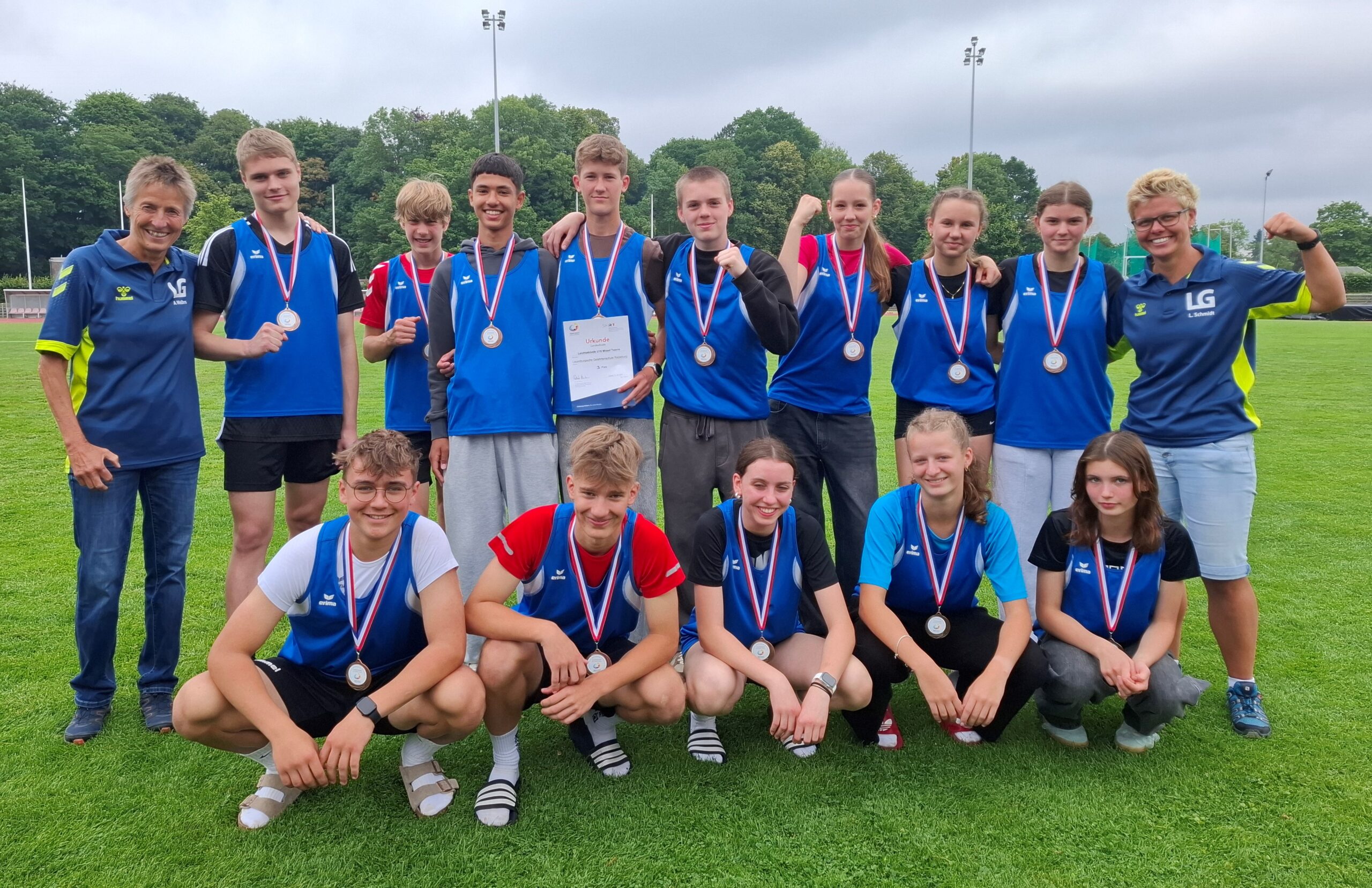 Der letzte Sportwettkampf vor den Sommerferien hatte noch einmal großen Jubel zur Folge. Auf dem Lübecker Buniamshof maßen sich diesmal die Mannschaften des erst zum zweiten Mal ausgetragenen Mixedwettbewerbs der Altersklasse U16. Die zwölf punktbesten Mannschaften aus Schleswig-Holstein waren zum Landesentscheid geladen und die LG-Sportler schafften mit gutem Teamgeist erneut (nach ihren U18- und U14-Kollegen) den Sprung auf das Siegertreppchen. Im engen Duell um Platz drei hatten die Ratzeburger am Ende dank der sehr guten Laufleistungen und ihrer Stärke im Bereich Wurf/Stoß und im Hochsprung die Nase vorn.